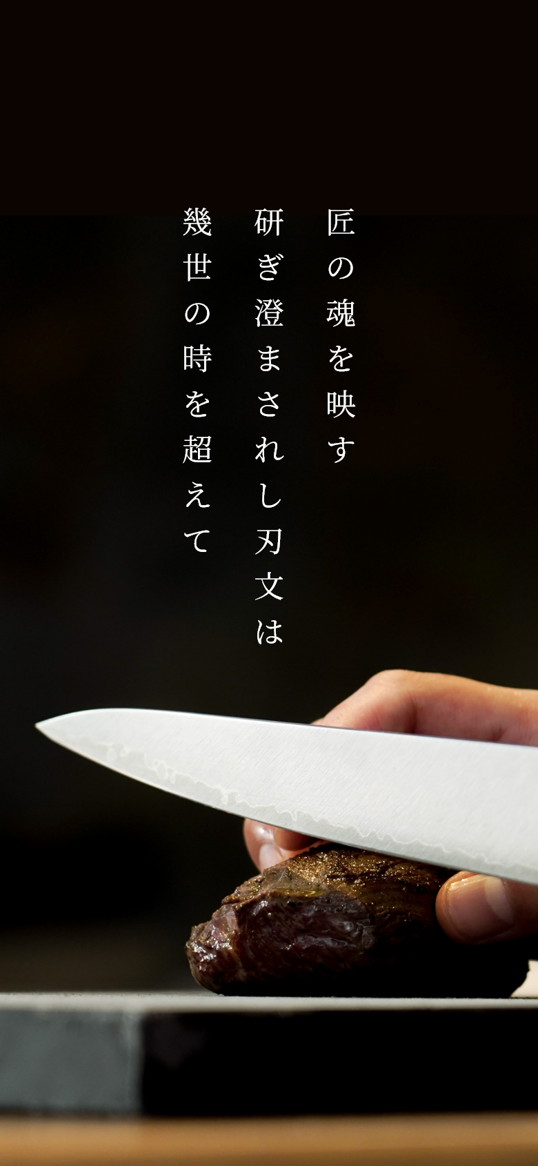 黒く耀く刃が、料理のひと手間を美しく演出。切るたびに心地よい響きを感じます。 Elegant black shine with exceptional sharpness and balance.