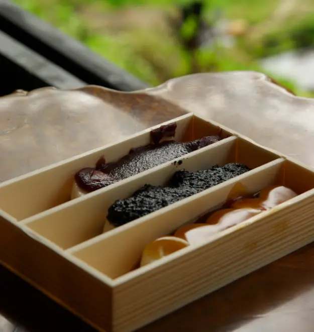 柔らかな餅で餡を包み、うぐいす粉をまぶした春の味わい。素朴で上品な甘さです。